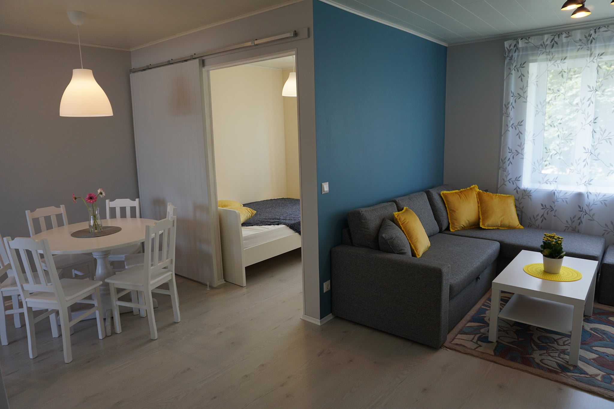 Korteris on kaks magamistuba, avatud elutuba-köök-söögituba ja vannituba. Voodikohti on 8: 2 kaheinimesevoodit, 1 narivoodi ja 1 diivanvoodi. Köögis on kõik vajalik toidu valmistamiseks ja kogu korteris on wifi.